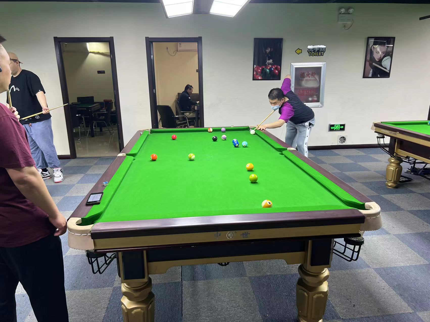 节的控制能力。大家聚精会神,合理运用杆法技巧,精细计算进球线路,他们不停走动查看最佳击球点,架杆、出杆、