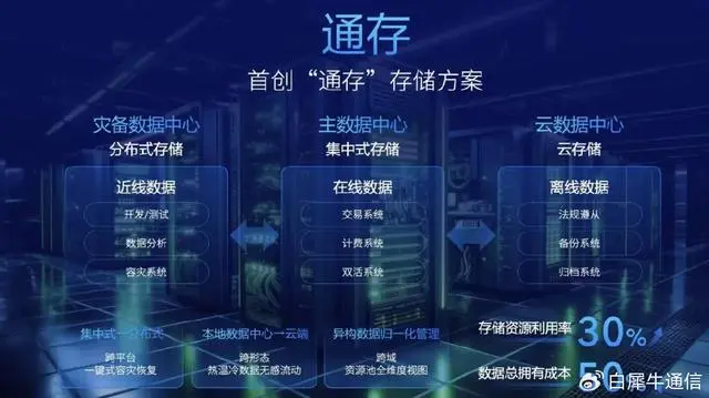 简单来说,曙光存储独创的“通存”解决方案,是其针对通信行业复杂数据管理需求的一大创新。该方案打破了传统存储系统间的壁垒,通过同根同源的集中式与分布式存储资源池,实现了数据的无界流动。这种创新模式不仅极大地提升了存储资源的利用率,使得用户资源利用率提高30%,同时,数据总拥有成本也显著降低了50%。这对于追求高效运营与成本控制的通信企业而言,无疑是巨大的福音。